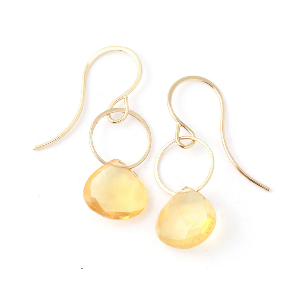 14K Gold Citrine Single Drop Earrings