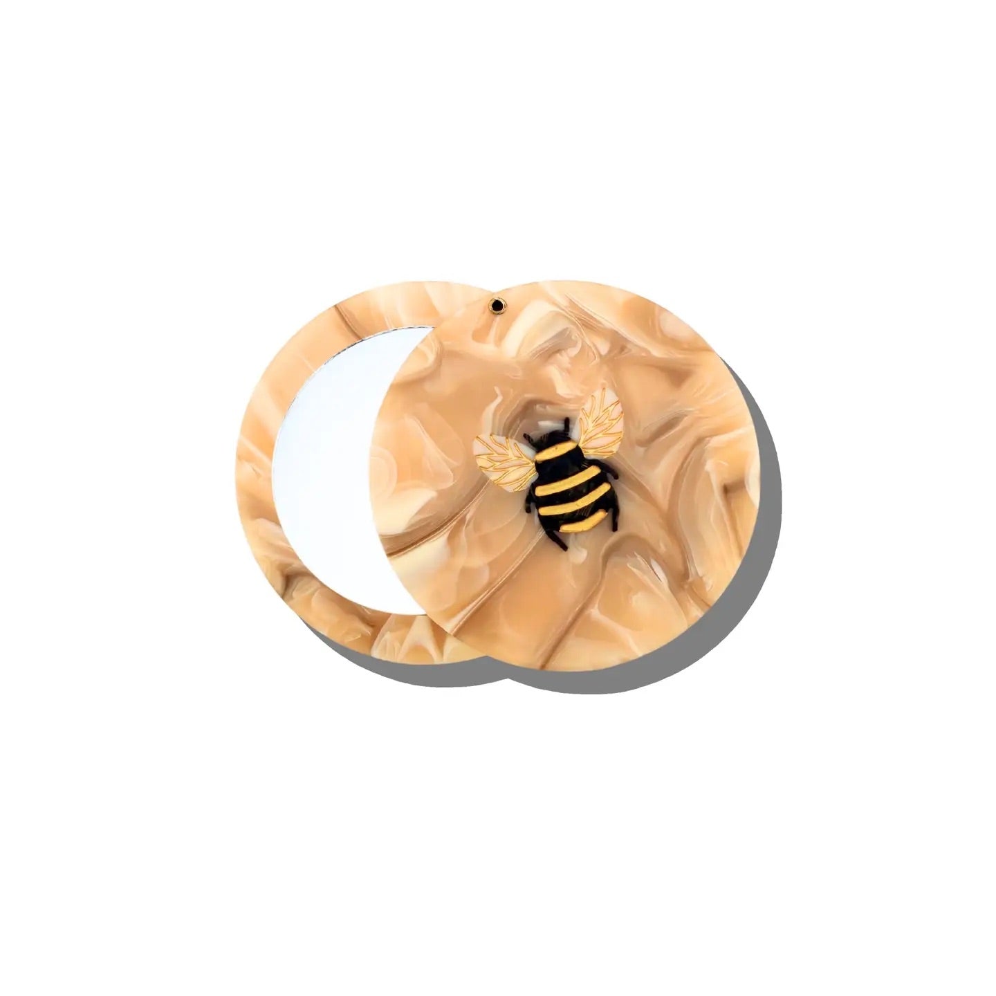 Sweet bee purse mirror slides open easily and fits in your bag. Hand-painted and carefully crafted from cellulose acetate - an eco-friendly, biodegradable material made from recycled wood pulp.