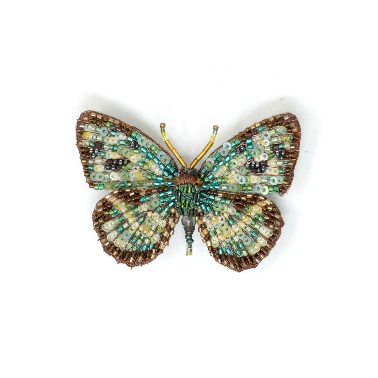 Aqua and brown are a lovely color combo and this butterfly brooch of sequins, beads and embroidery makes the case successfully.