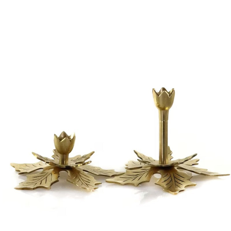 Vintage-inspired heavyweight cast metal, finished in brass, with two layers of articulated holly leaves and carved veining. So pretty for your holiday table! Use them singly or paired.