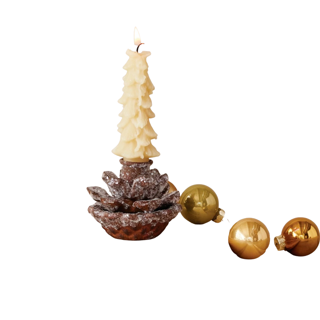 Glittered Pinecone Taper Candle Holder