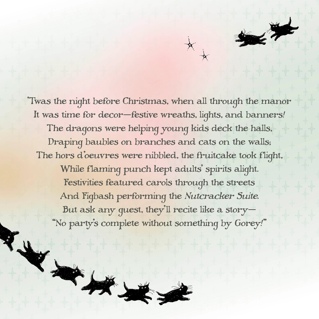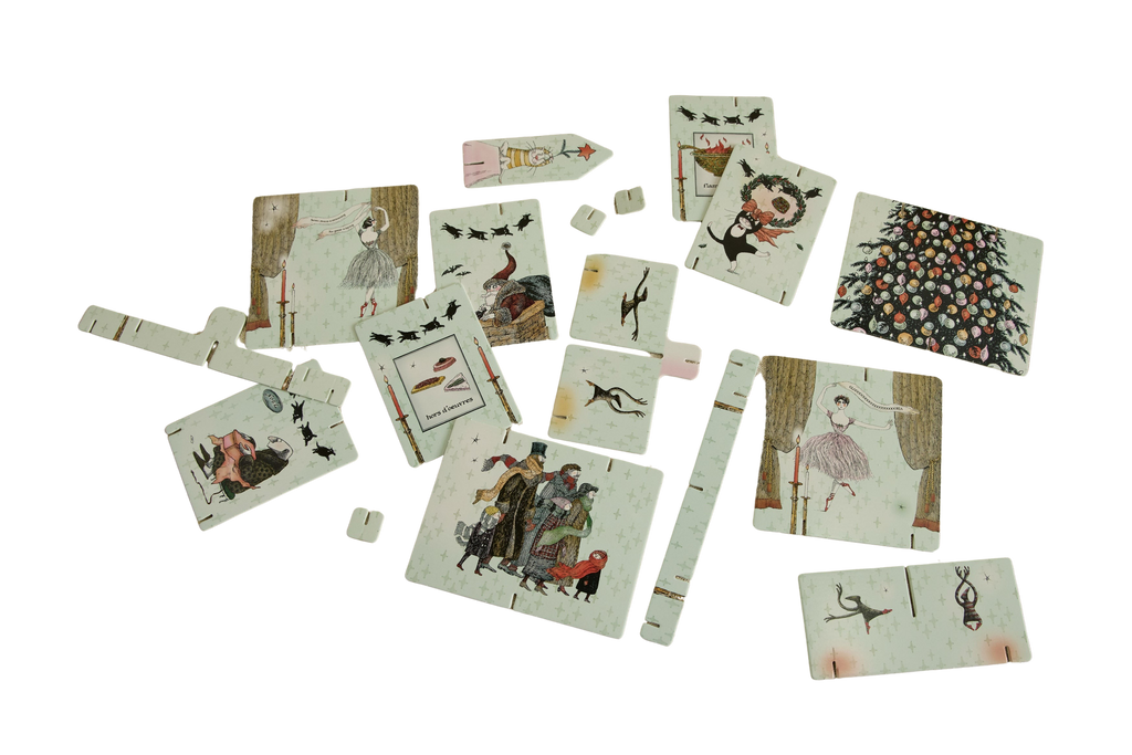 No glitter, no glam ... all you need is the inimitable Edward Gorey's Christmas classics to construct in a wonderful holiday decor set. Made from punch-out artboard pieces presented in a sturdy slipcase box with ribbon pull tab. An illustrated booklet to guide assembly is included. Printed on FSC paper with soy-based inks.