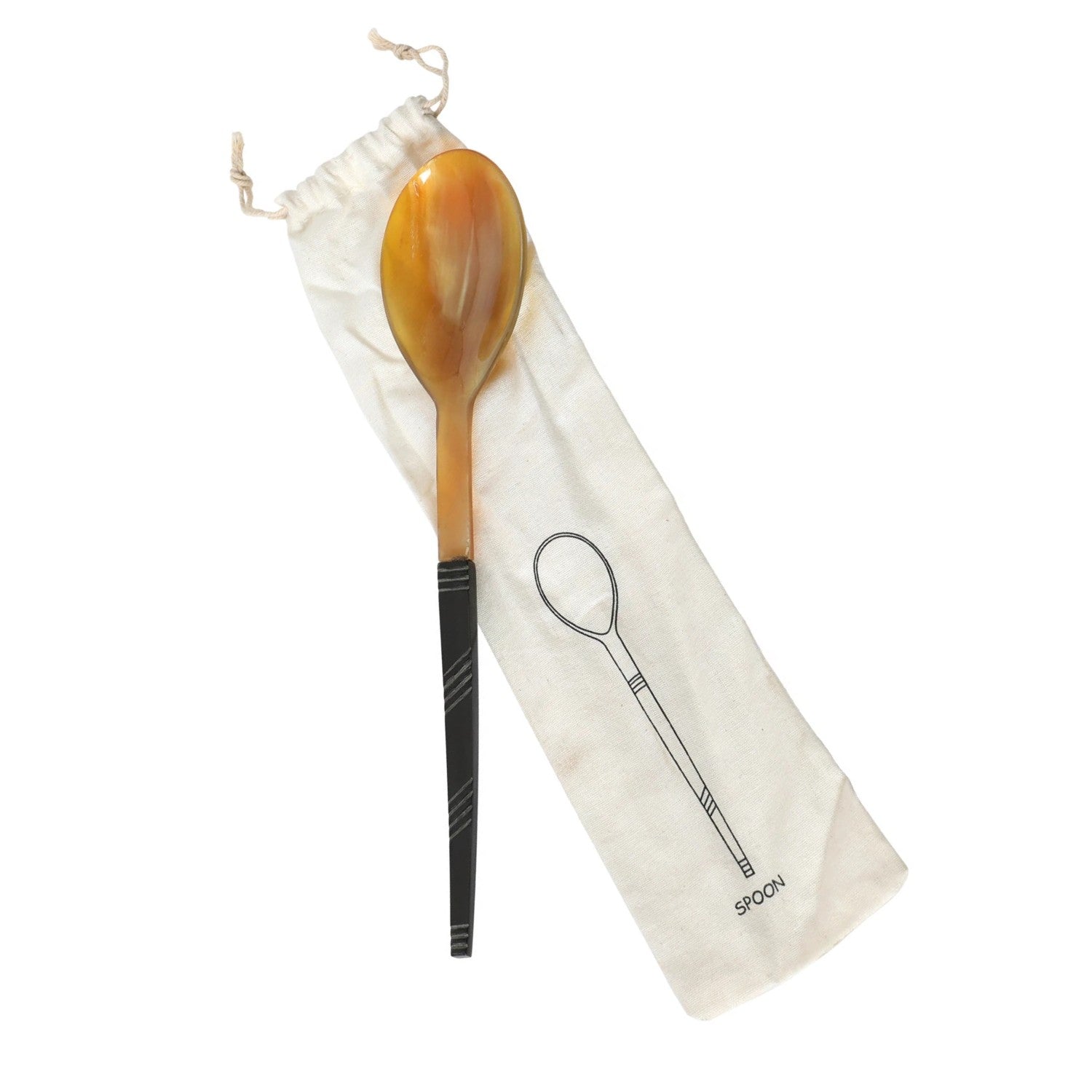 Handsome hand carved two tone natural horn serving spoon, good for serving side dishes.