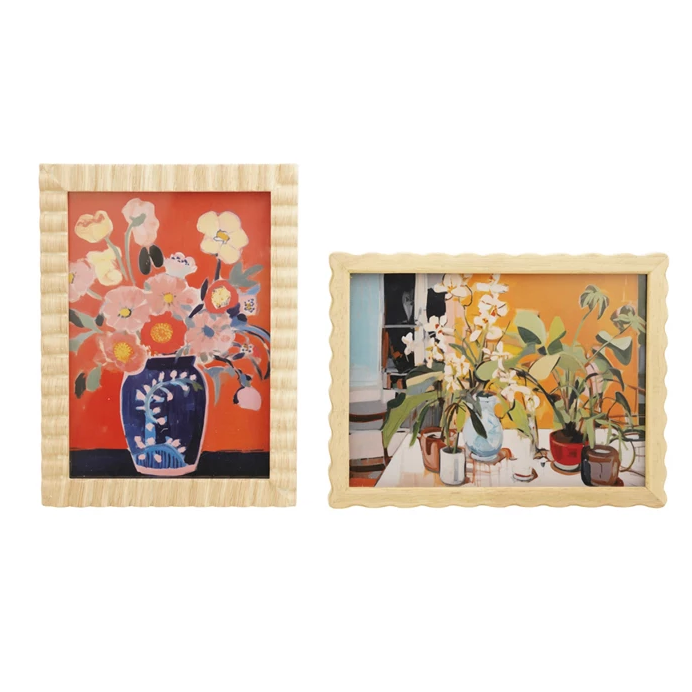 Charming wooden frames for photos or prints in two styles: ribbed texture or scalloped edge. Pair them or use them separately -- they sit or hang. Price is for one frame.