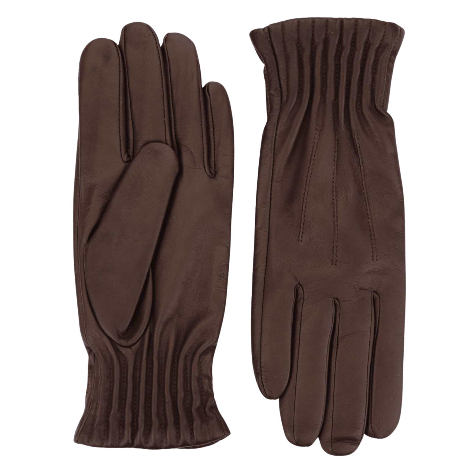 These luxurious nappa leather gloves in luscious chocolate brown have an elasticated gathered wrist designed to keep out the cold.