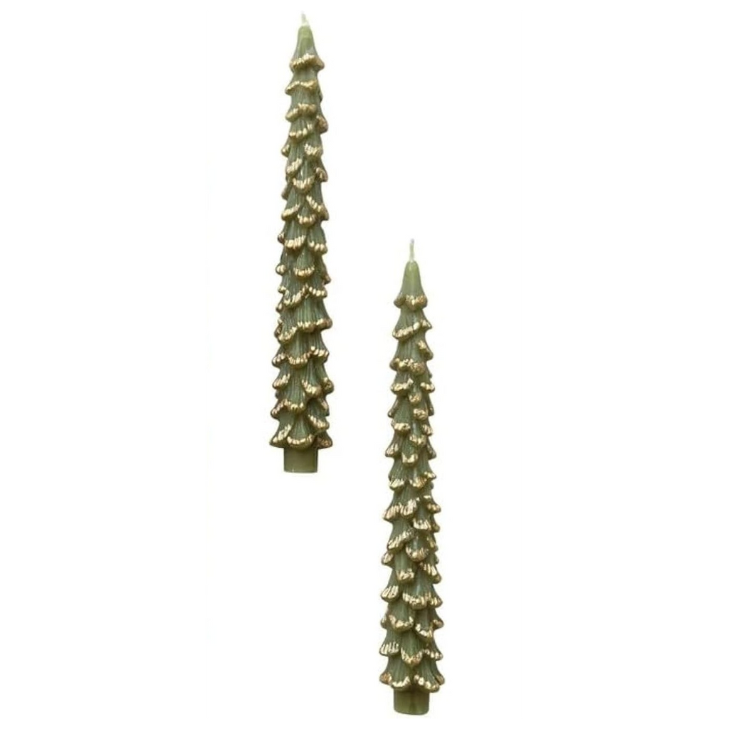 Green & Gold Tree Taper Candles