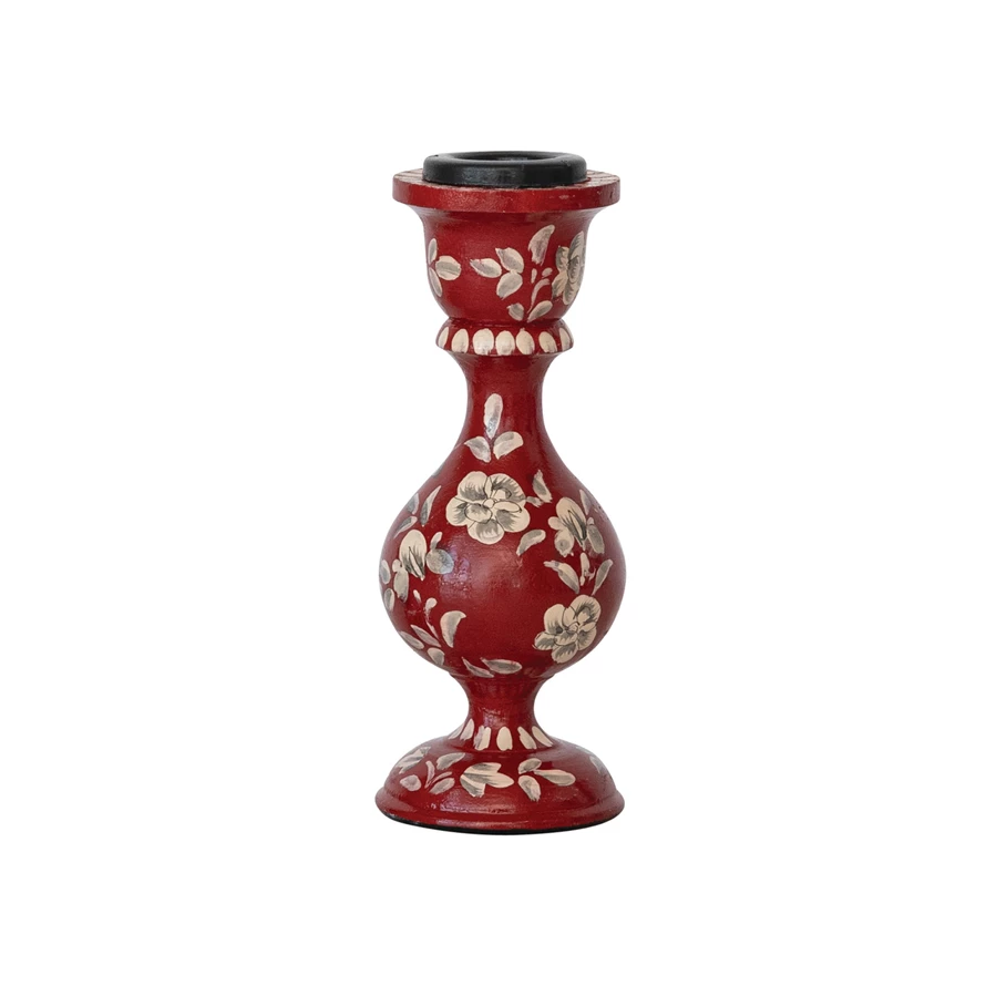 Hand-Painted Wood Taper Candlestick