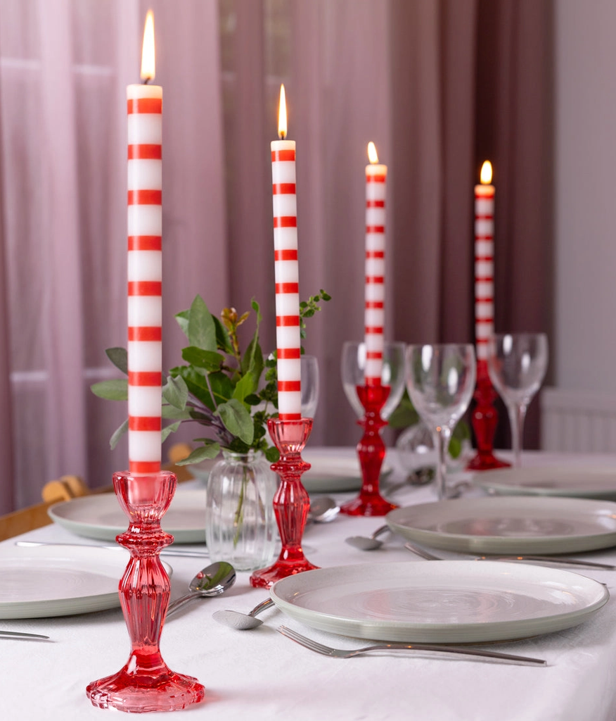 Red & White Striped Taper Candle