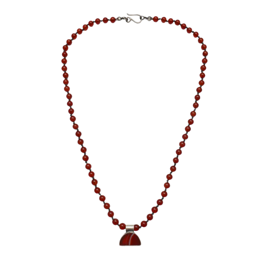 Fire Opal & Gold Pyrite on Woven Silk Cord Necklace