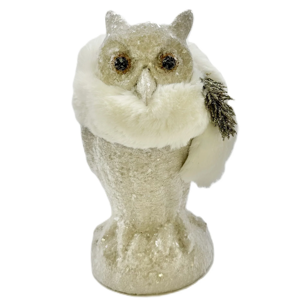 Draped in a luxurious channeled ivory faux fur stole, Adele's ensemble is elevated by a silvery pine needle brooch that glimmers like winter’s first frost. Adele is a captivating embodiment of holiday charm.