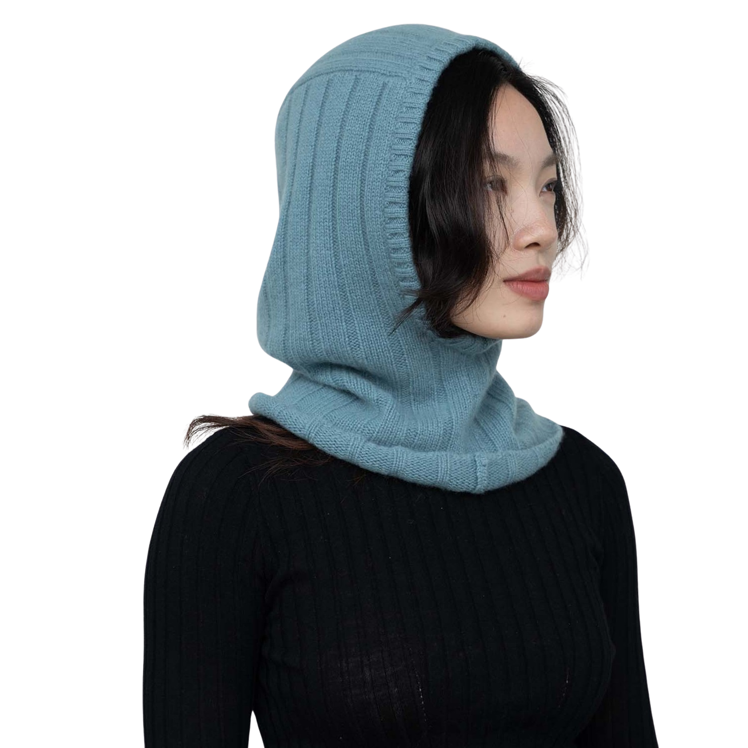 Luxurious cashmere balaclava, a versatile piece that can be worn as both a neck warmer and a hood, offering exceptional protection against the elements. The ribbed texture adds sophistication, while the soft cashmere ensures you stay cozy all day long. 100% organic cashmere.
