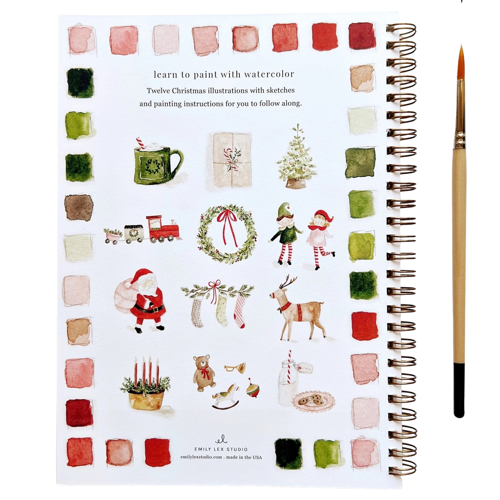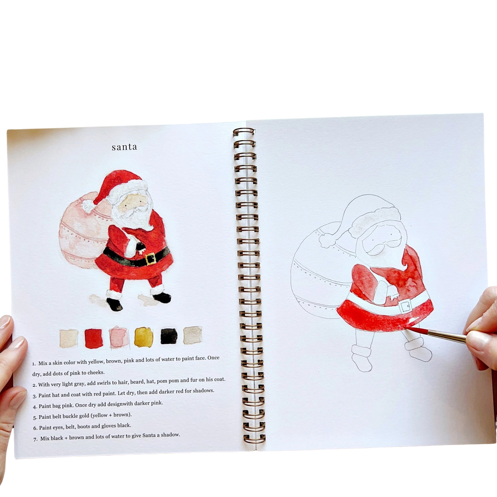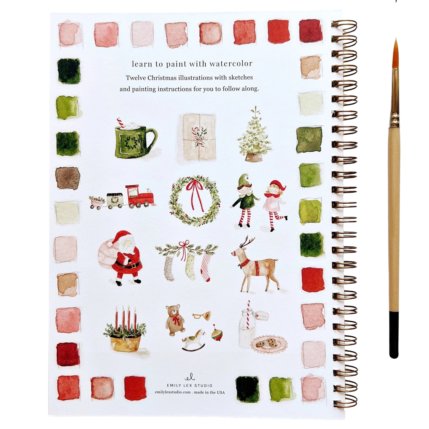 12 different Christmas-themed illustrations with an example of the finished painting, step-by-step instructions, and a lightly illustrated sketch for you to paint. It's just like a coloring book, but with watercolor! Enjoy this peaceful painting hobby on your own, with children, or with friends. Makes a wonderful gift and is perfect for artists of any age.
