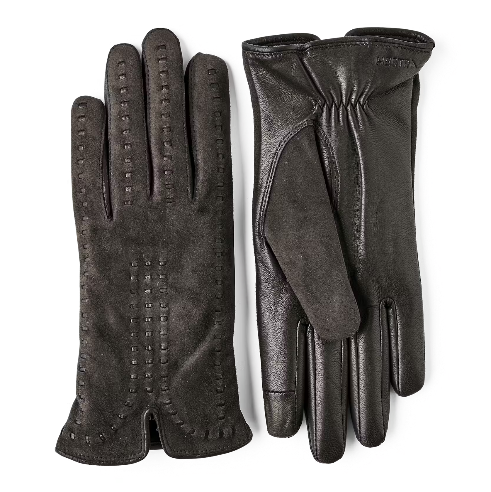 The softest suede meets exclusive hairsheep leather in this beautifully designed women’s glove. The backhand in suede has subtly eyecatching pleated details which contrast with the glossier leather on the palm. A knitted wool lining of 80% wool/20% polyamide is comforting and warming on chilly days.