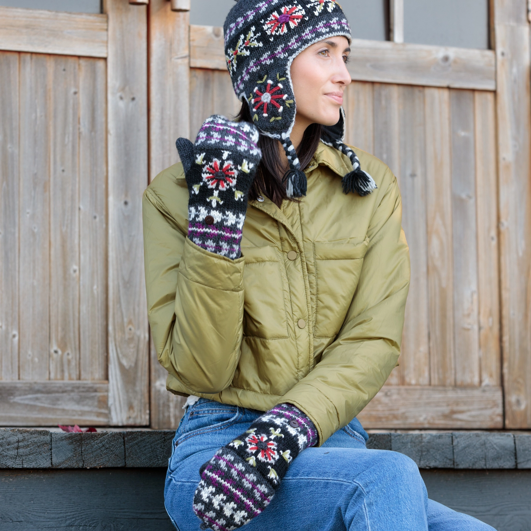 Elevate your cold-weather style. These mittens effortlessly transform into fingerless gloves, offering the flexibility required for a range of activities while ensuring your hands stay comfortably warm. Crafted of 100% wool made extra cozy with a fleece lining. One size. Made in Nepal, Fair Trade Federation member.
