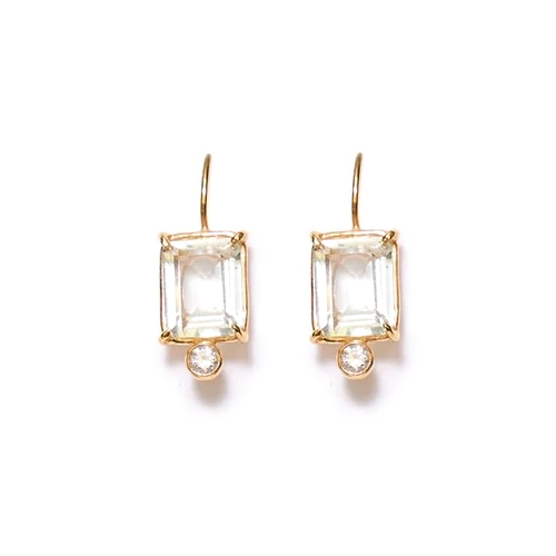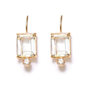 Emerald cut palest green amethysts set off by sparkling diamonds are simply glamorous earrings.