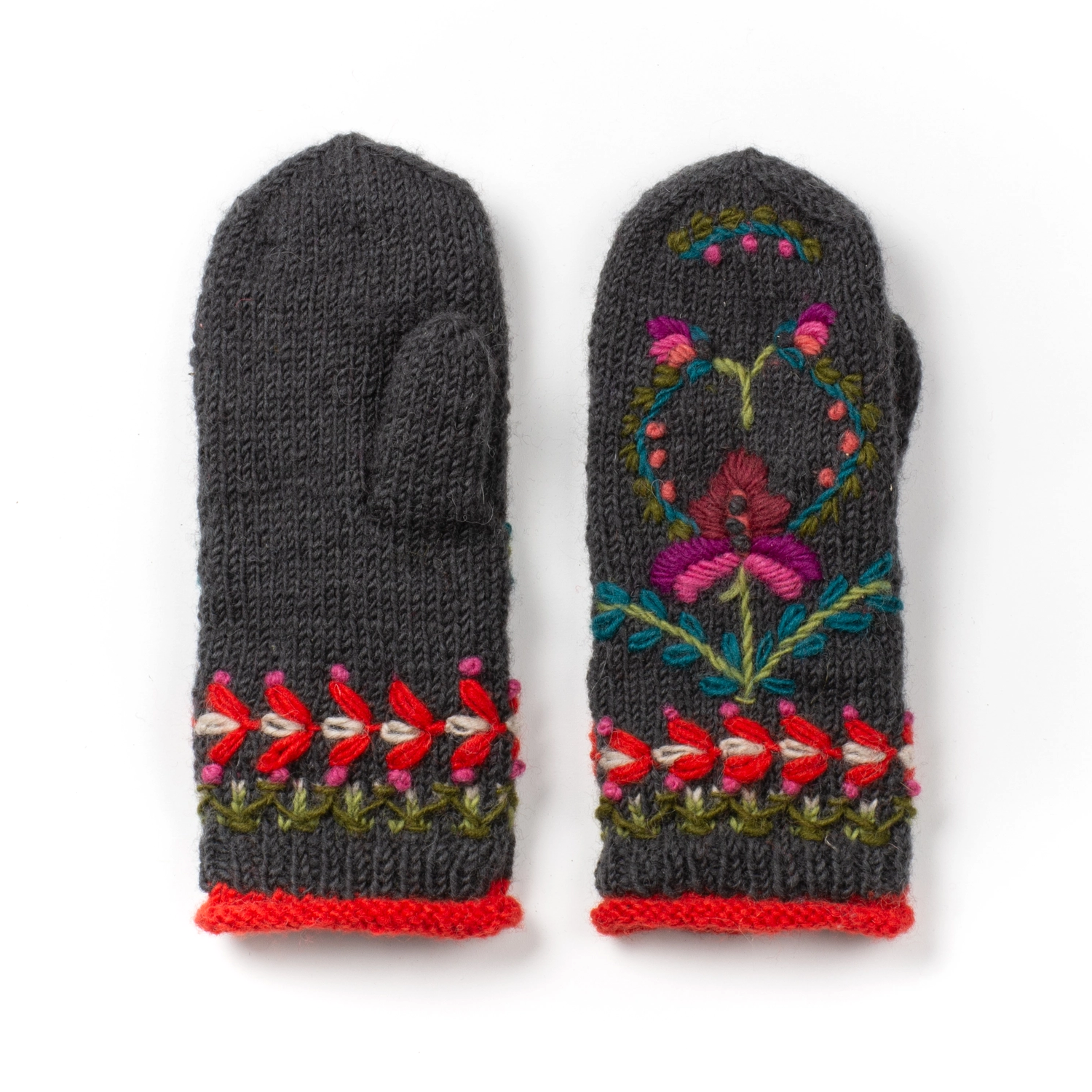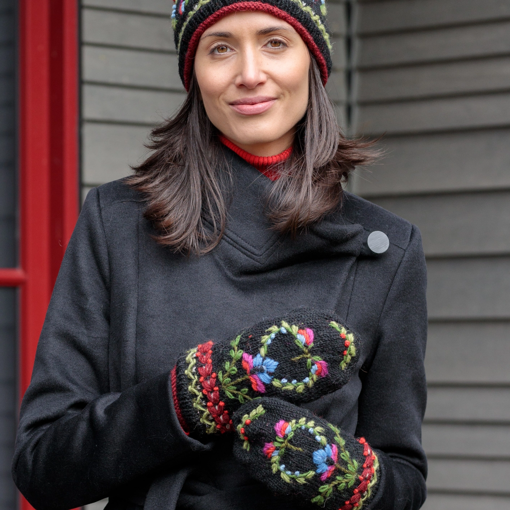 A delightful fusion of Bavarian tradition and modern comfort. This enchanting beanie hat features intricate embroidery inspired by the region's folk art, creating a visually captivating and culturally rich design. The vibrant colors add a lively touch to your winter ensemble, while the fleece lining ensures cozy warmth on even the coldest days. 100% wool, poly fleece lined. Made in Nepal, Fair Trade Federation member.