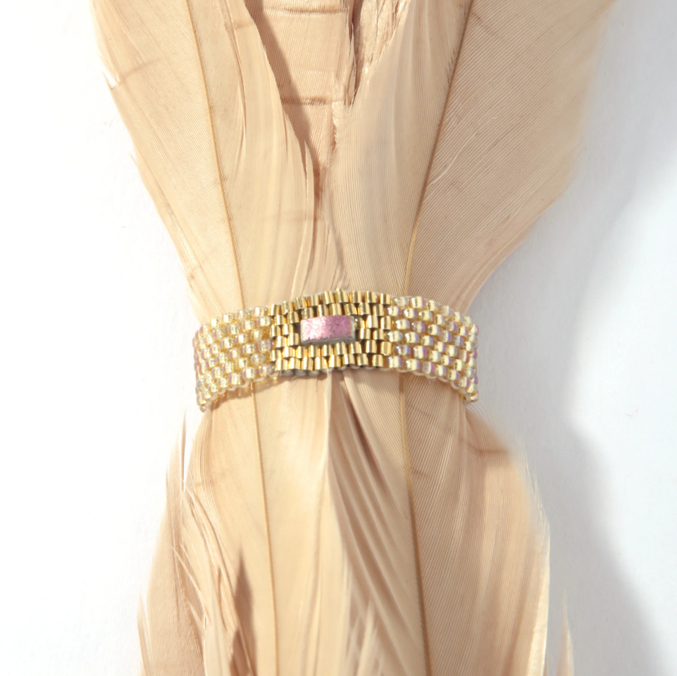 Intricately woven glass bead wide band ring has a lovely allure. We have a Size 7 available, but this ring can be special ordered in any ring size, 4-9.