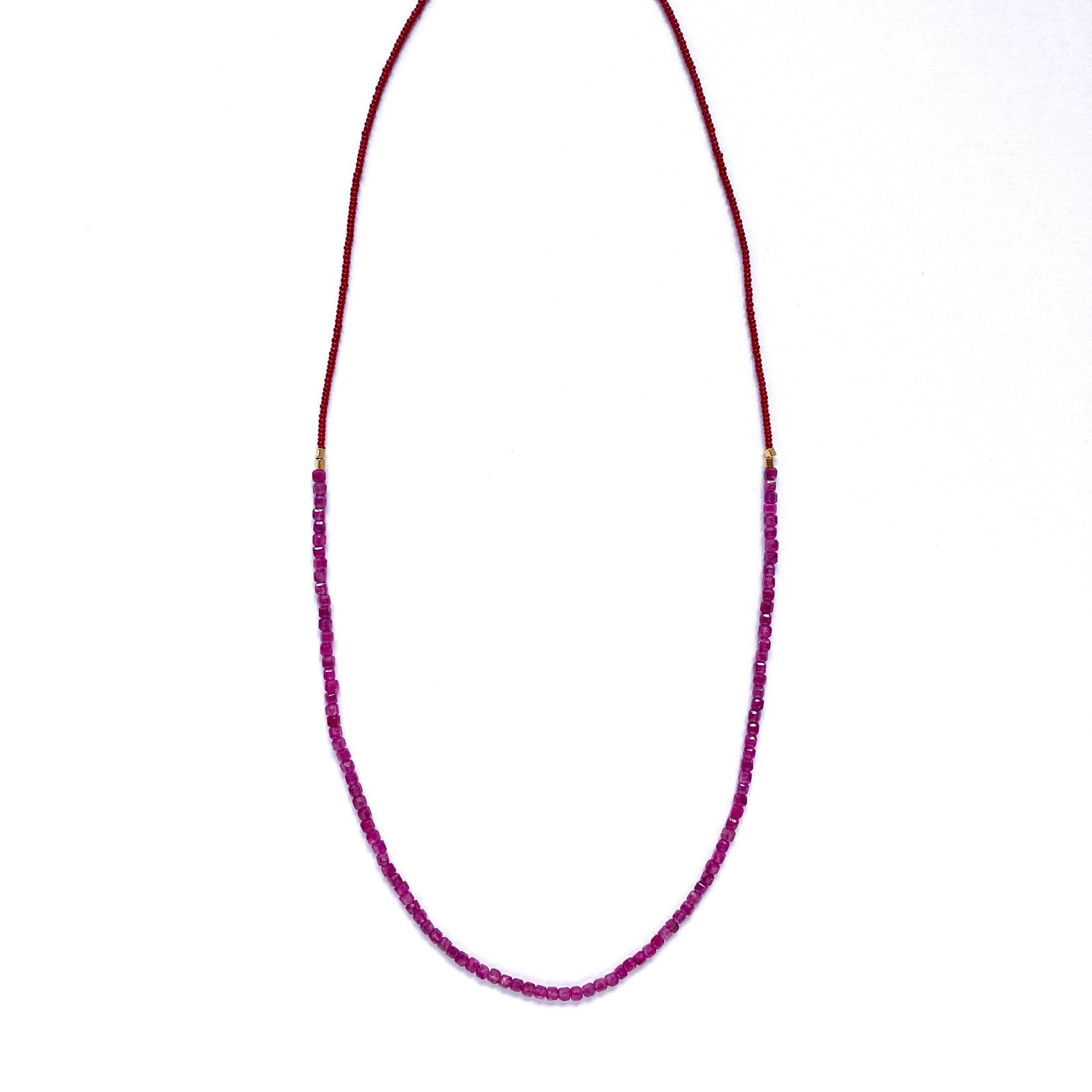 Lush red ruby gems join deep red Japanese glass beads with gold vermeil beads where they meet.