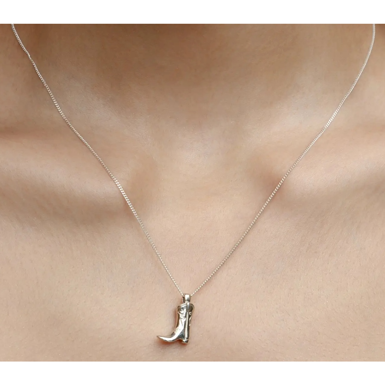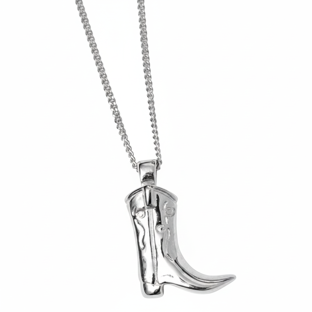 This boot isn't for walkin' -- it's for lookin' good. Sterling silver cowboy boot charm with "tooled" accents, suspended from a silver curb chain.