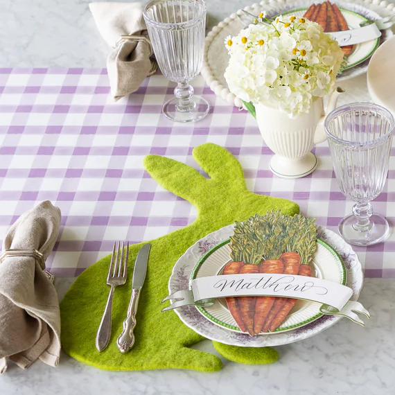 Charming die-cut felt bunny placemats will enliven your spring and Easter tabletops. These placemats are sold individually.