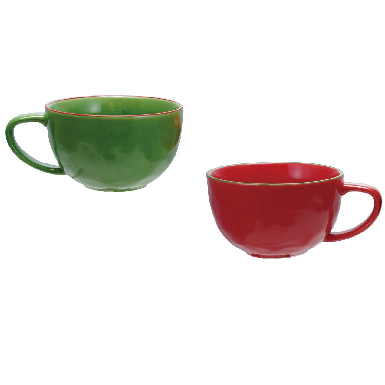 Make your morning cup of coffee merrier with red and green mugs with contrast rims. Sturdy stoneware, microwave and dishwasher safe. Sold assorted, please indicate your color preference in the "Add a note to your order" section of the shopping cart.