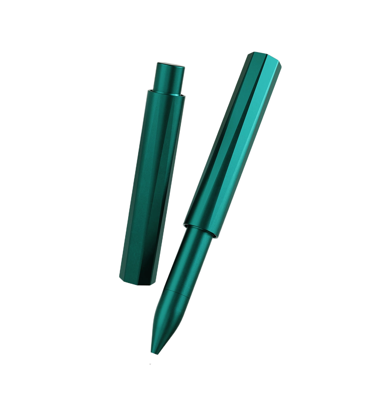 This innovative new felt-tip pen is refillable! It writes smoothly with a nib that's not too thick, not too thin. It utilizes a unique filling system. The pen's body is separated, revealing a reservoir that is then placed into an ink bottle. Capillary action draws the ink into the reservoir. The tip becomes saturated with ink, ready for writing or drawing. You can use any standard fountain pen ink except shimmer inks which have particles that can clog the reservoir and tip.