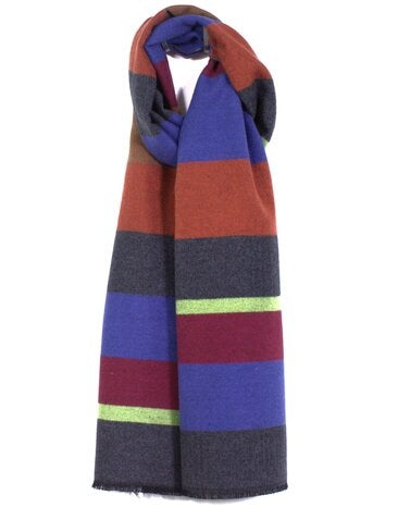 Rust/Blue Big Stripes Brushed Silk Scarf