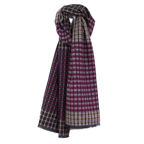 Brown/Burgundy Check Plaid Brushed Silk Scarf