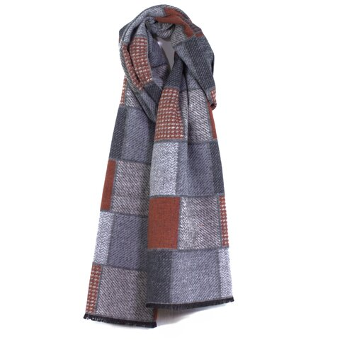 Charcoal/Multi Graphic Checks Brushed Silk Scarf