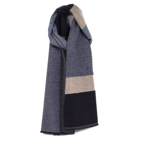 Taupe/Black Herringbone Stripe Brushed Silk Scarf