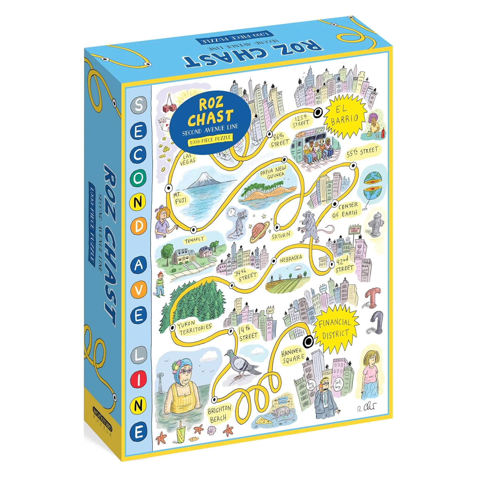 Roz Chast, the celebrated New Yorker cartoonist, has been making readers laugh for decades. Her Second Avenue Line puzzle is a hilarious and clever ode to New York City and its famous subway, making it a perfect gift for puzzlers, Chast fans, and NYC-lovers alike.