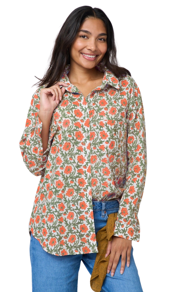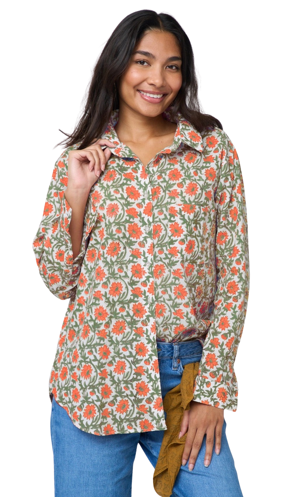 Good Boyfriend Shirt - Darlington Floral Papaya - S/M