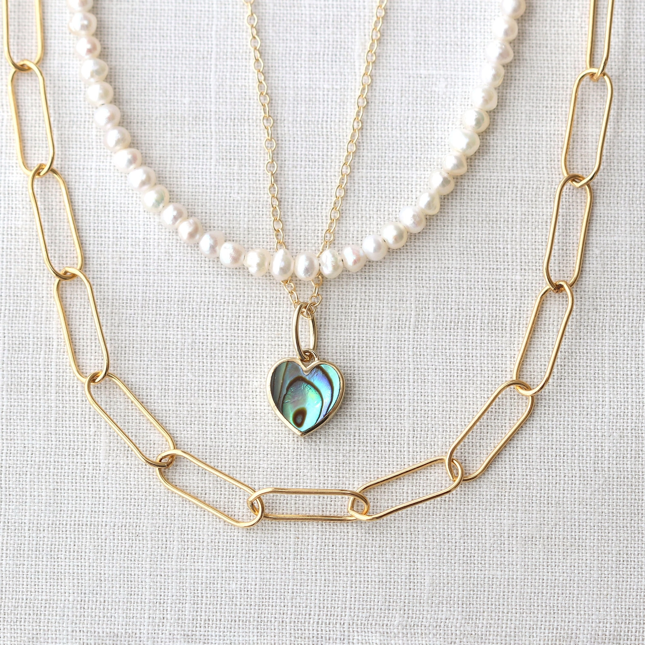Luminescent abalone set in 18k gold vermeil will light up your love for Valentine's Day and beyond.