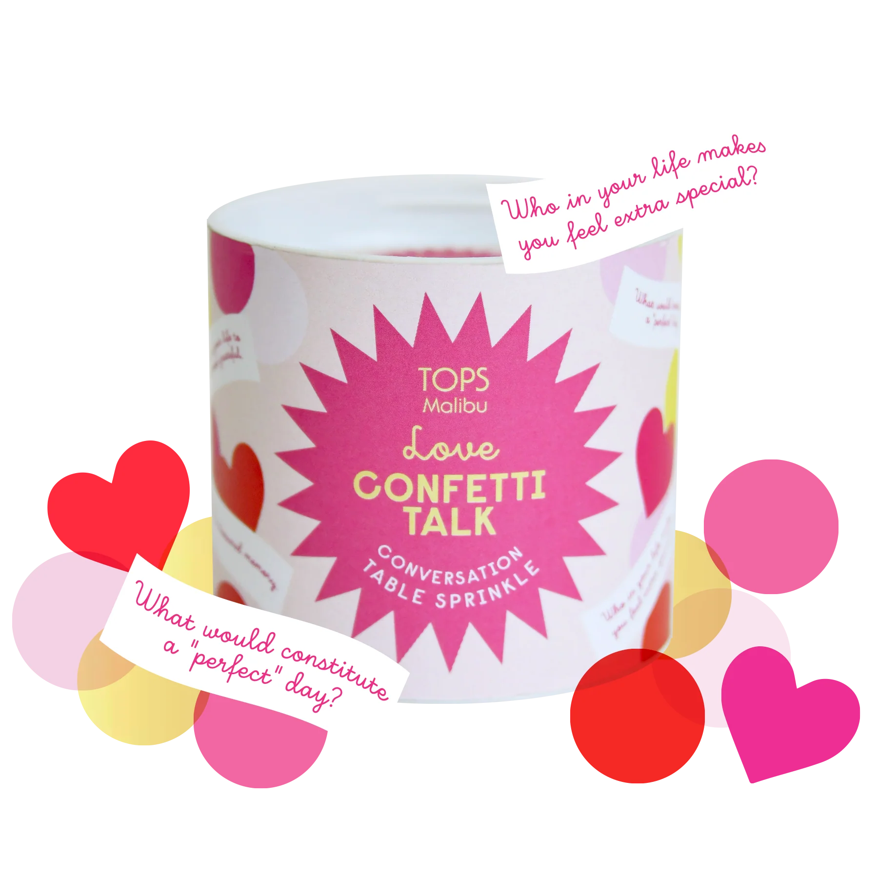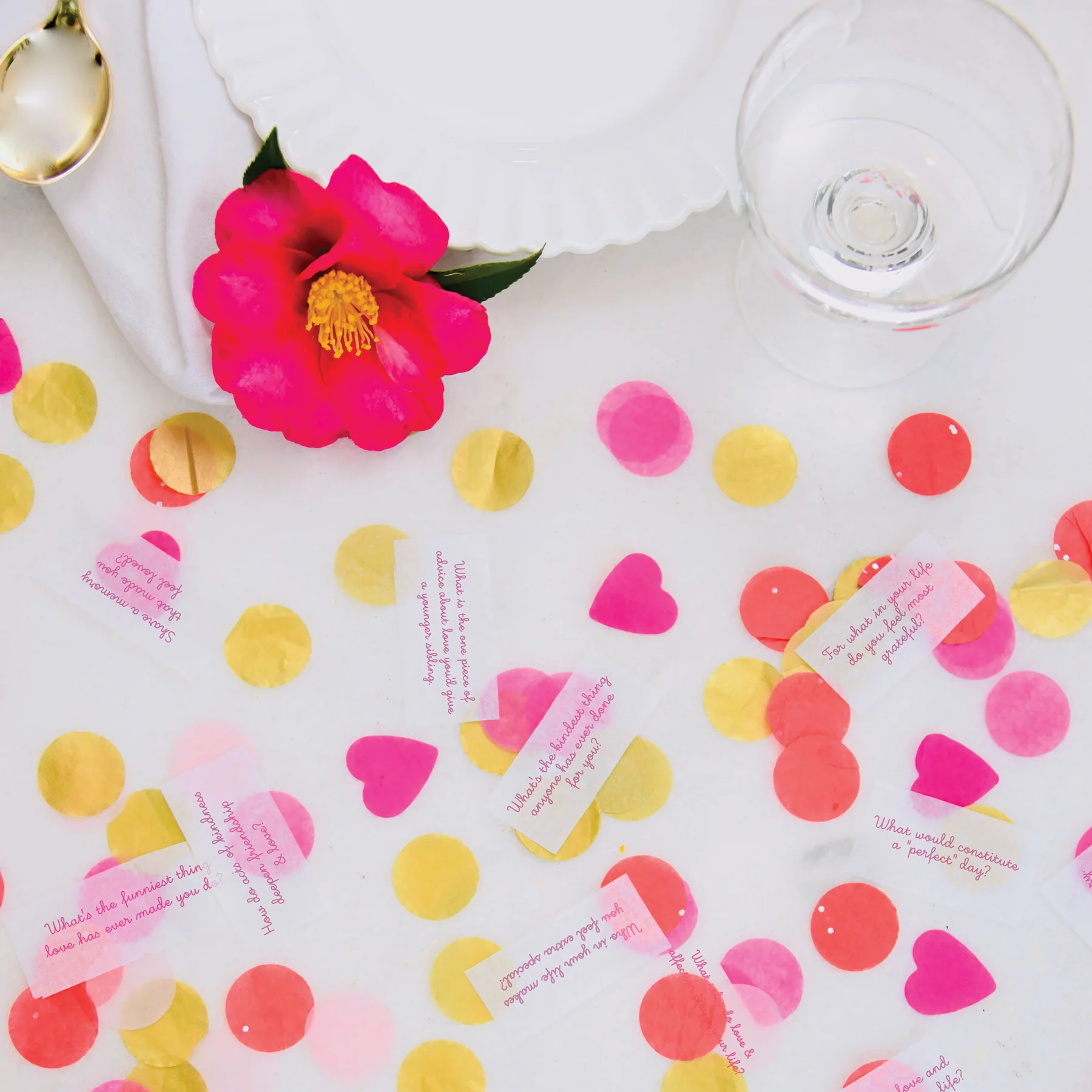 Colorful heart confetti with 24 heartwarming questions & quotes!