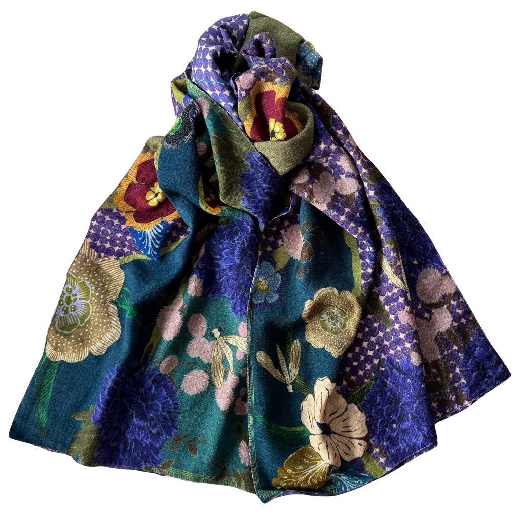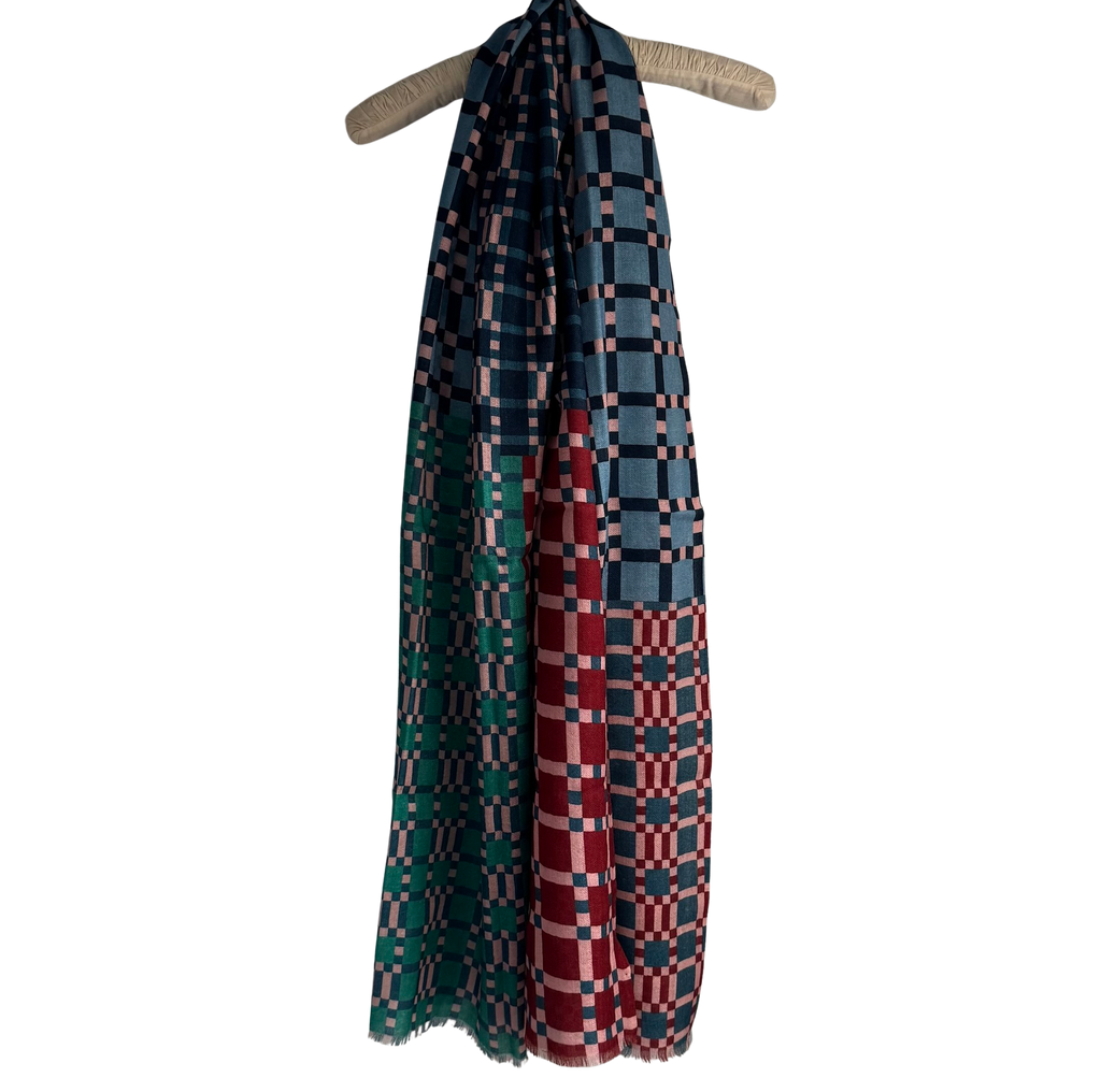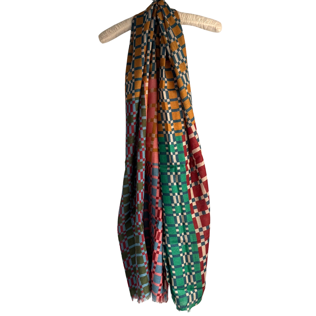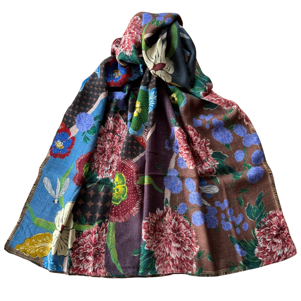 No. 693 Gingham Flowers Wool Scarf - Fig