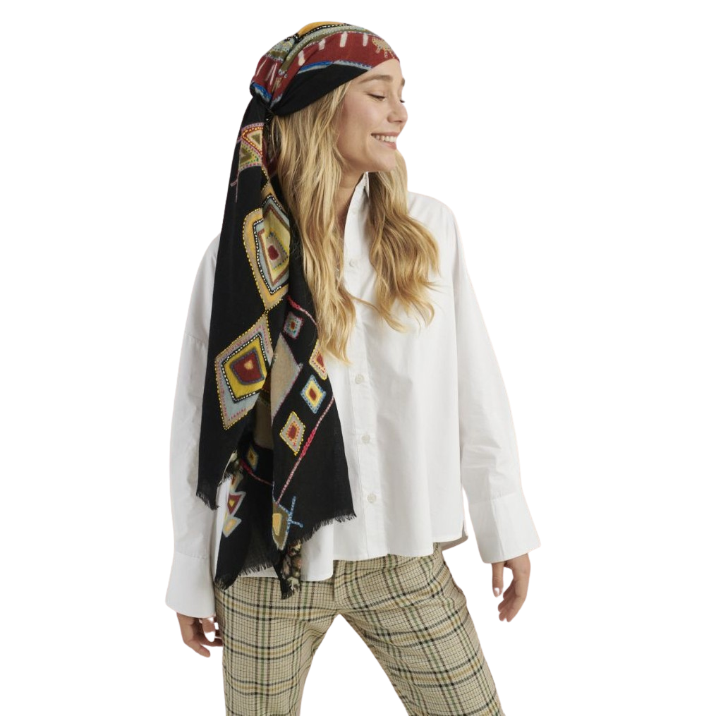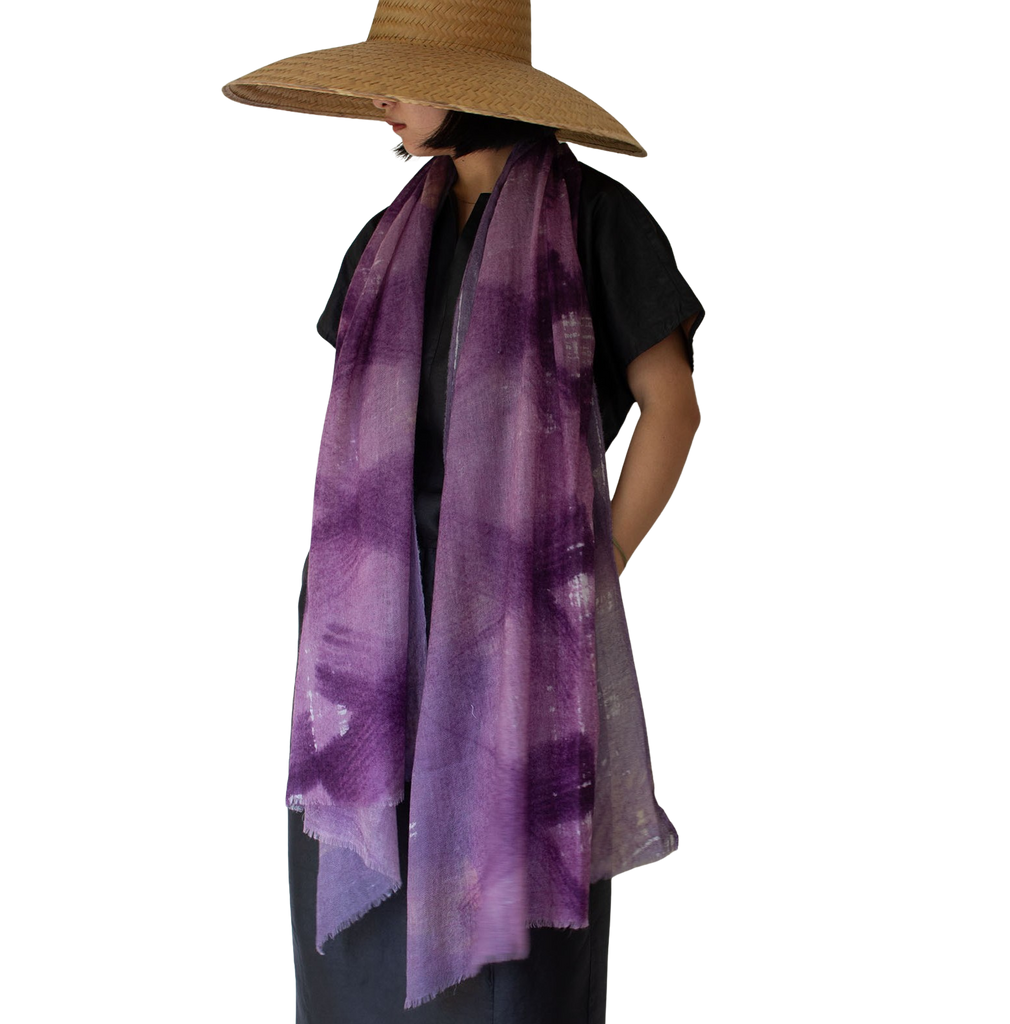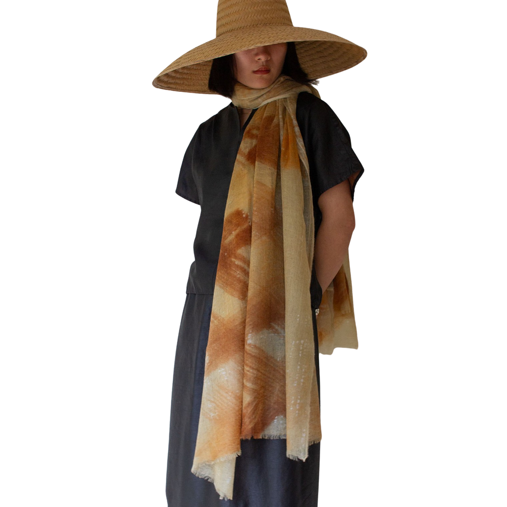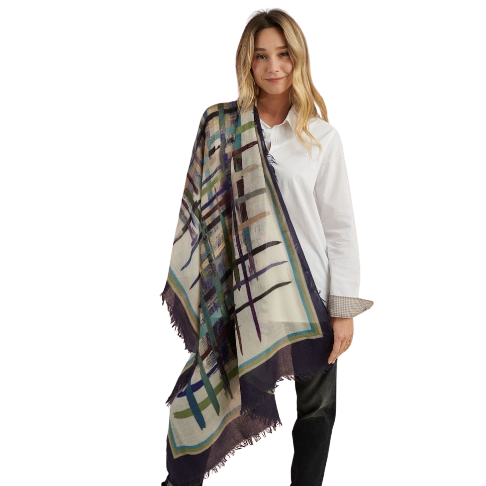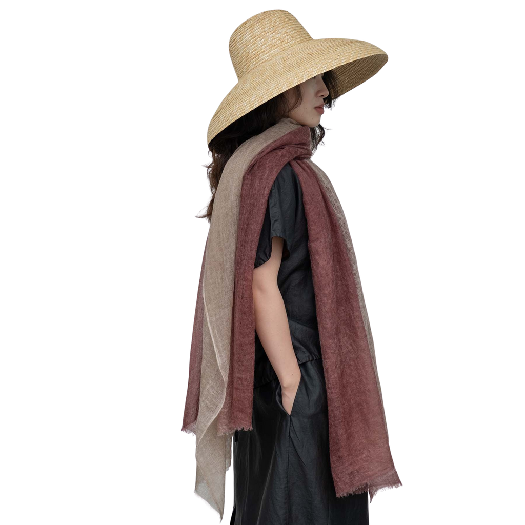 No. 693 Gingham Flowers Wool Scarf - Fig