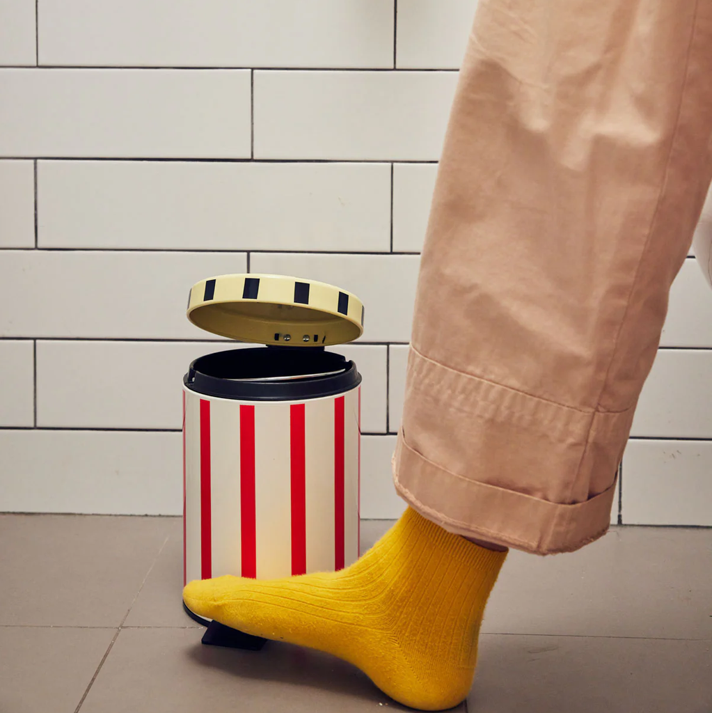 Dusen Dusen's new pedal trash bin is made of powder coated steel with an inner propylene pail. Its small size fits neatly in bathrooms. According to Dusen Dusen it holds 6,250 q-tips (they did the math.)