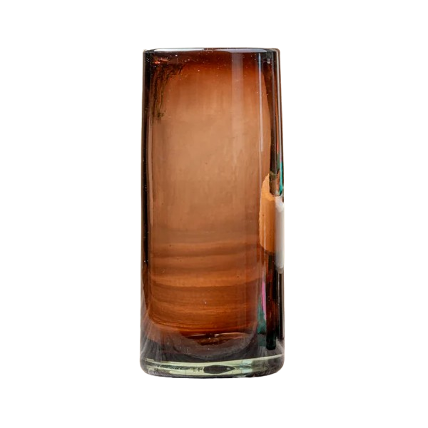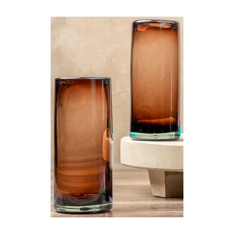 Handblown, nicely weighted, straight-sided tall glasses in rich tamarind brown that will elevate any beverage. Made in Mexico.